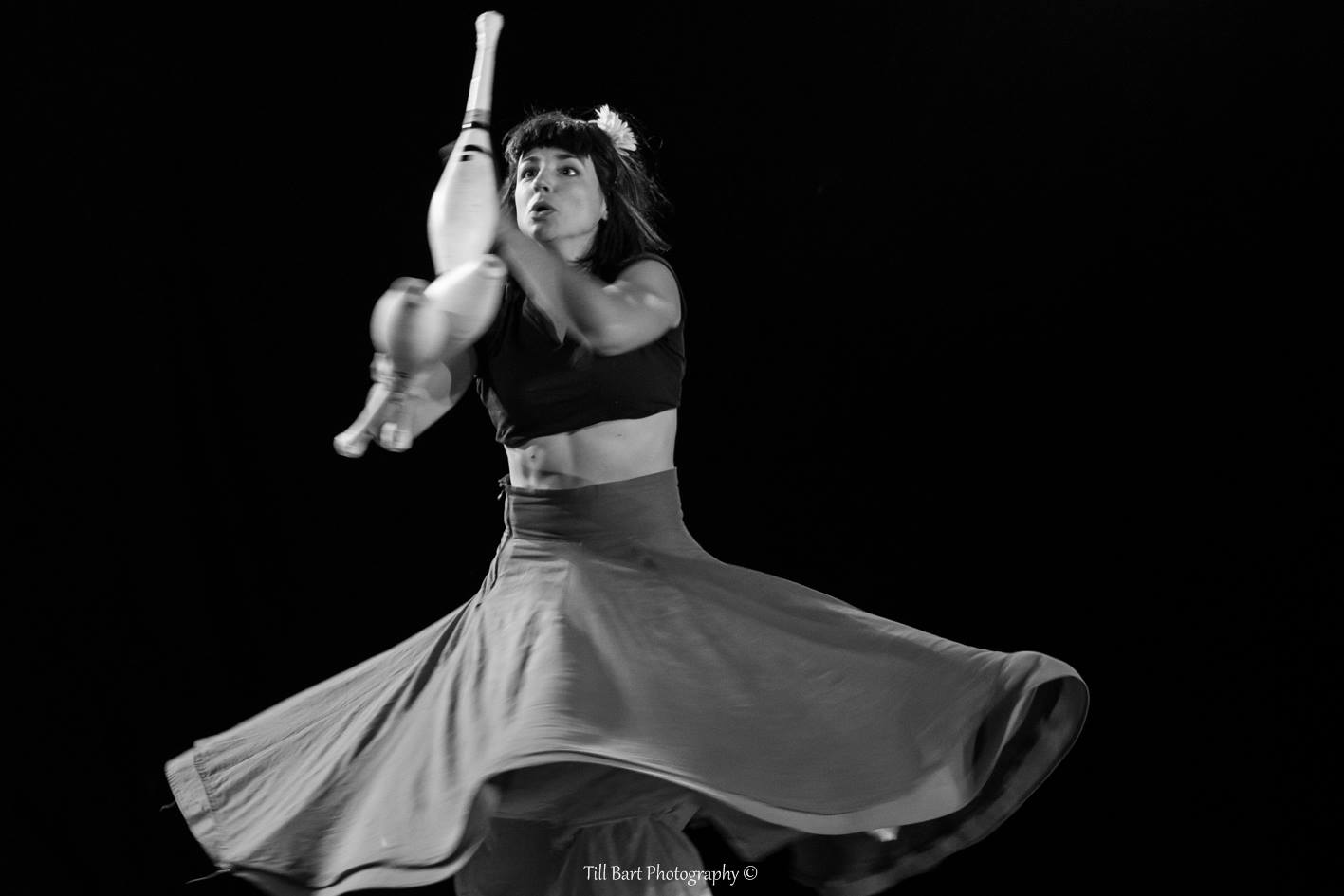 Un espectáculo poético, metafórico y surrealista de teatro físico, danza y malabarismo/equilibrio de mazas, para todos los públicos.