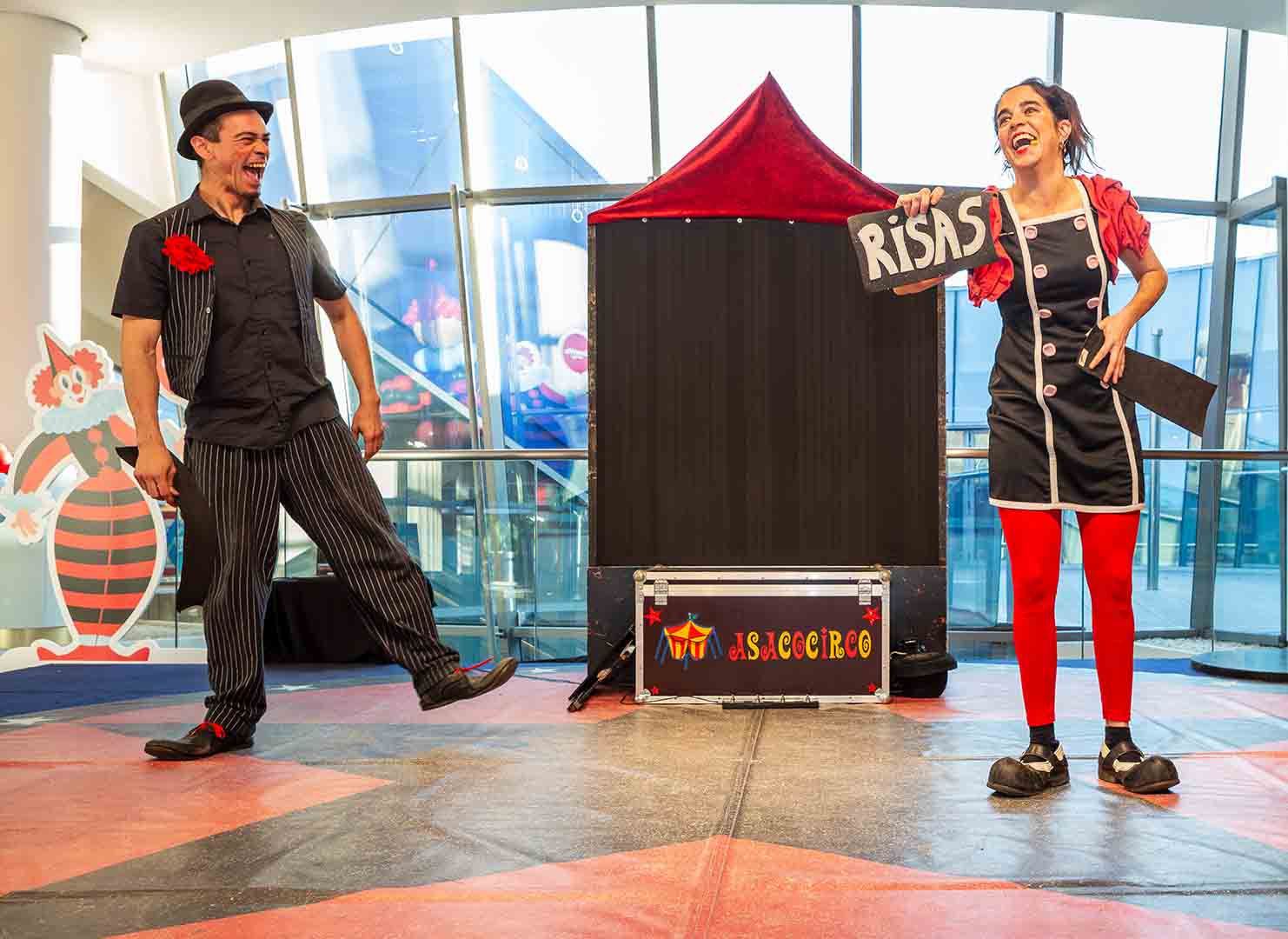 El espectáculo mas rodado de la compañia con mas de 500 funciones a lo largo de mas de 13 años de historia. Nace de la locura e idiotez de sus protagonistas, Mirroska y Juanito son los dos clowns de este divertido mini circo. De la fusión de estos dos payasos y el público se crea la magia del teatro de calle, son risas aseguradas. Irrumpen en escena alborotando con sus ganas de protagonismo, a partir de aqui una presentacion, un numero de magia cómica, numeros de mazas, bolas y acrobacias mezclados con juegos participativos con el publico. Todo en clave de humor harán pasar al publico asistente un rato divertido y sin desperdicio. El espectáculo combina humor, y destreza física a partes iguales, todo con mucha técnica y ritmo, con pocas palabras