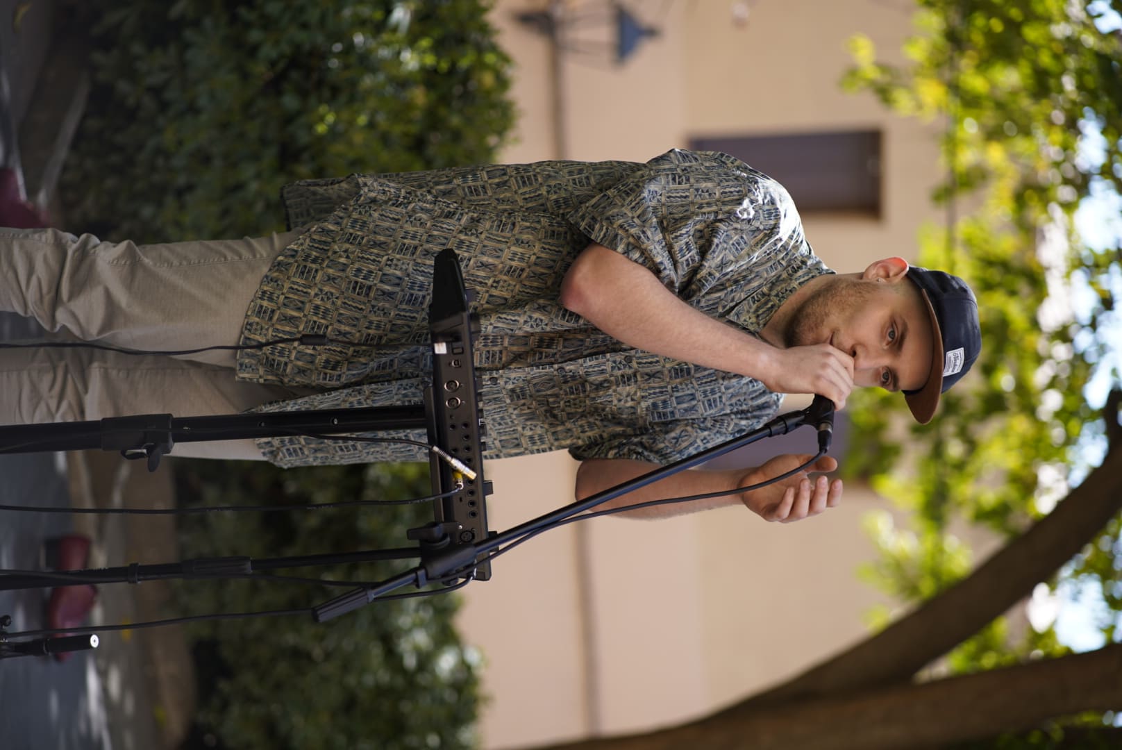 "DoubleTap" es un show donde la danza se improvisa y la música se loopea. El intérprete se mueve entre el tap de las teclas de una loop station y el tap de sus zapatos, explorando diferentes estilos y calidades de movimiento, en contrato tap, body percussion y urban, todo ligado a través de música electrónica original.