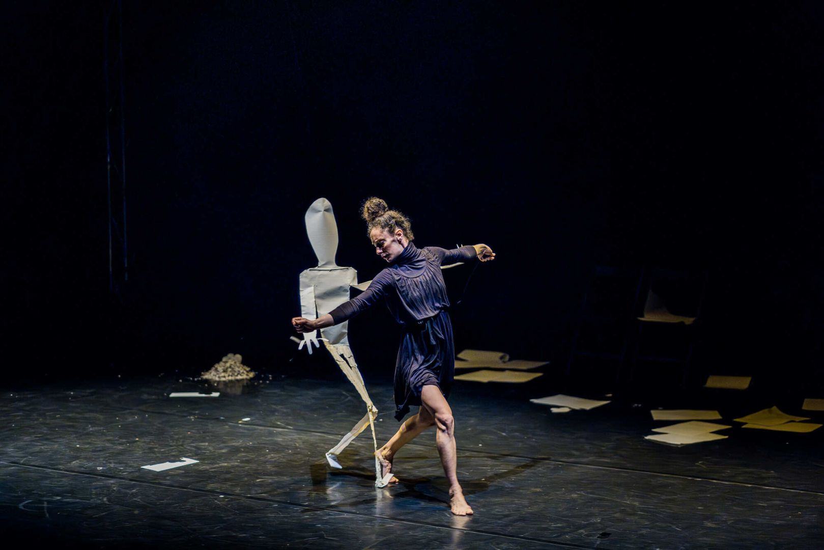 ¿Cuánto somos capaces de manipular nuestros propios pensamientos con tal de evadirnos de la realidad? Anónimos es un espectáculo de danza y circo contemporáneo, sensible y poetico, que nos sumerge en el subconsciente de una mujer que crea a través del papel una realidad paralela, un refugio onírico, donde el paso del tiempo se convierte en efímero y ligero para dar lugar a la nostalgia del olvidado. Una pieza con una innovadora puesta en escena, que fusiona la danza, la acrobacia, los equilibrios y la manipulación de objetos fantásticos y marionetas surrealistas, para introducirnos en un mundo frágil y tragicómico que nos propone una mirada distinta sobre la soledad .
