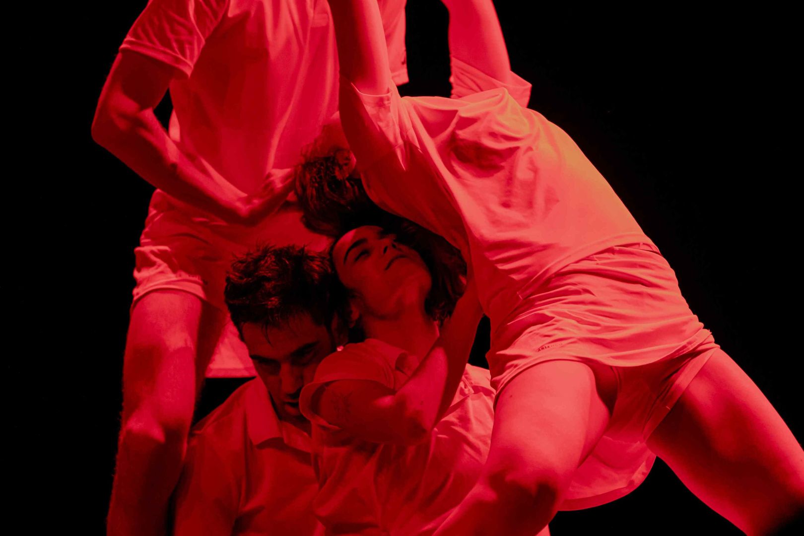 Repoblar el alma en tiempos de mascarilla es una pieza premiada de teatro físico contemporáneo para sala negra (65’). Cuatro intérpretes desarrollan una partitura de alto riesgo físico real sobre las heridas que la pandemia dejó en el cuerpo: miedo al contacto, aislamiento, culpa y deseo de reencuentro. Ritual laico, humor negro y vulnerabilidad extrema sitúan la memoria LGBTIQ+ y la reflexión política en el centro de la acción.