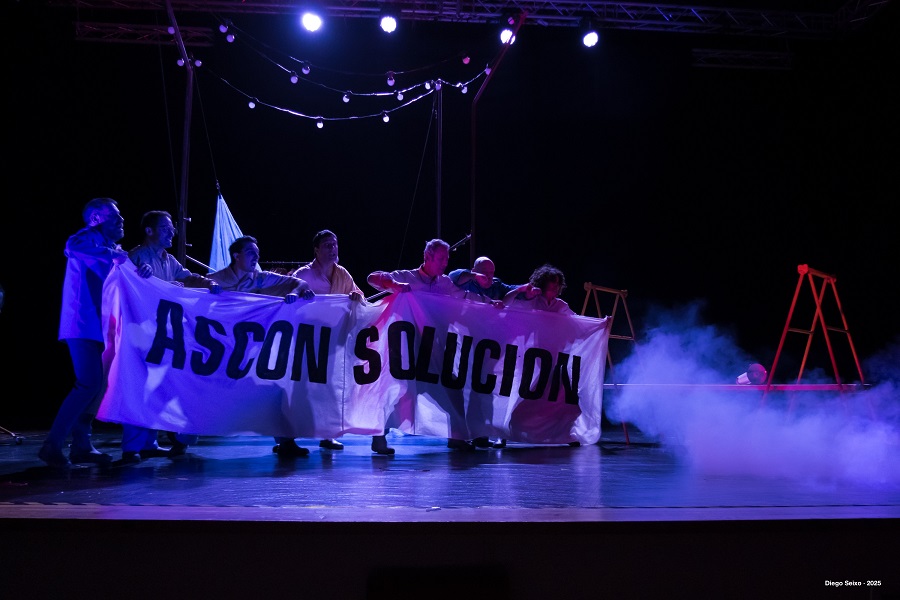 Espectáculo de gran formato para público adulto, con ocho actores-músicos que forman una charanga e interpretan la banda sonora en directo. Entre lo íntimo y lo político, el proyecto es un ejercicio de memoria histórica alrededor de la reconversión en el sector naval en la Ría de Vigo. La obra se centra en la peripecia vital del padre del autor, un hombre que trabajó en el astillero Ascón durante 30 años. Esta figura sintetiza las vivencias de toda una generación, que sufrió el paro por el cierre de la factoría en 1984 y vivió las movilizaciones históricas que tuvieron lugar en los años 70 y 80. RECONVERSIÓN es un viaje desde la postguerra hasta el “felipismo” de los 80, pasando por el auge de la siderurgia y la evolución desde un estilo de vida rural a una sociedad capitalista.