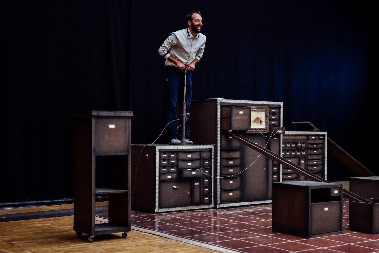Edu pone en escena una propuesta que cautiva desde el comienzo con una depurada técnica e investigación con los malabares que se mezcla con la tecnología, con una escenografía llena de sorpresas y una cuidada puesta en escena.