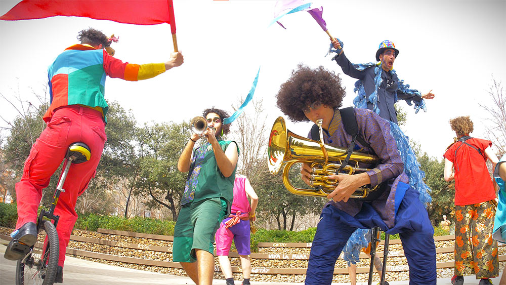 VENDAVAL es una banda de brass con payasos en zancos, monociclo y malabares. Hacemos un itinerante con música en directo que el público puede traer de un escenario a otro. También funciona bien como pasacalle que va encontrando al público que está en el festival. Tocamos entre 20 y 60 minutos y podemos dar múltiples pases.