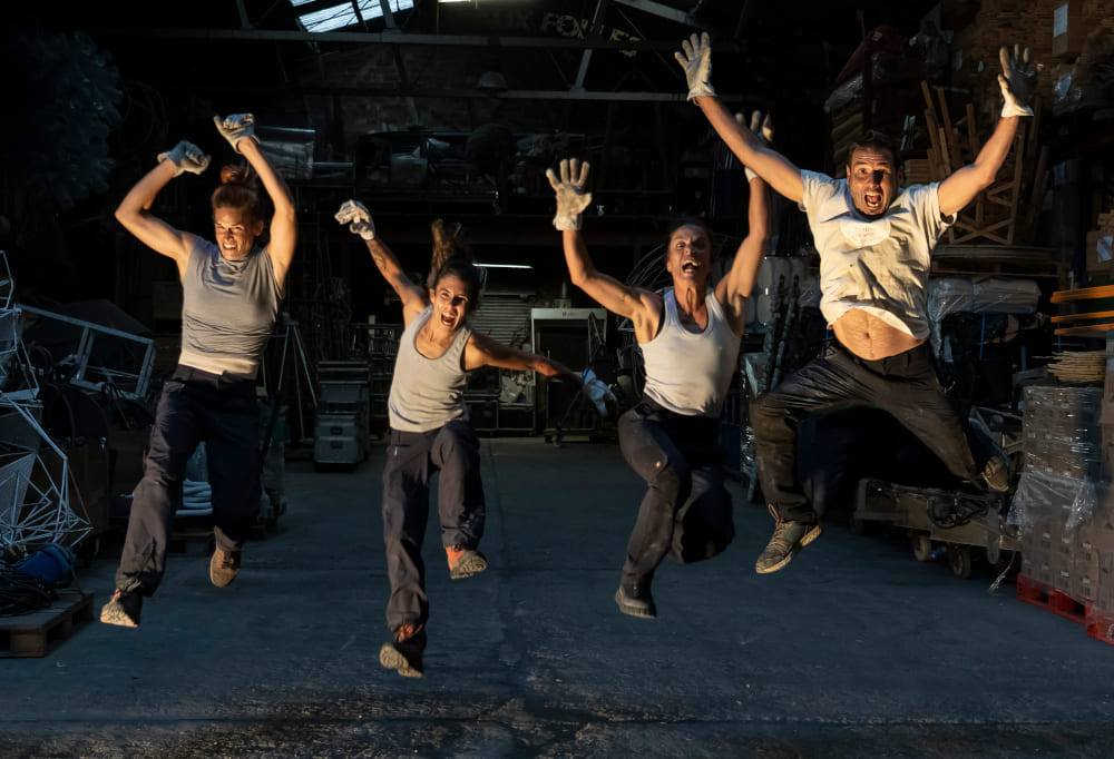 Acrobacias imposibles, situaciones límite y un humor feroz dan forma a un caos controlado donde el trabajo se transforma en circo y la repetición, en resistencia.