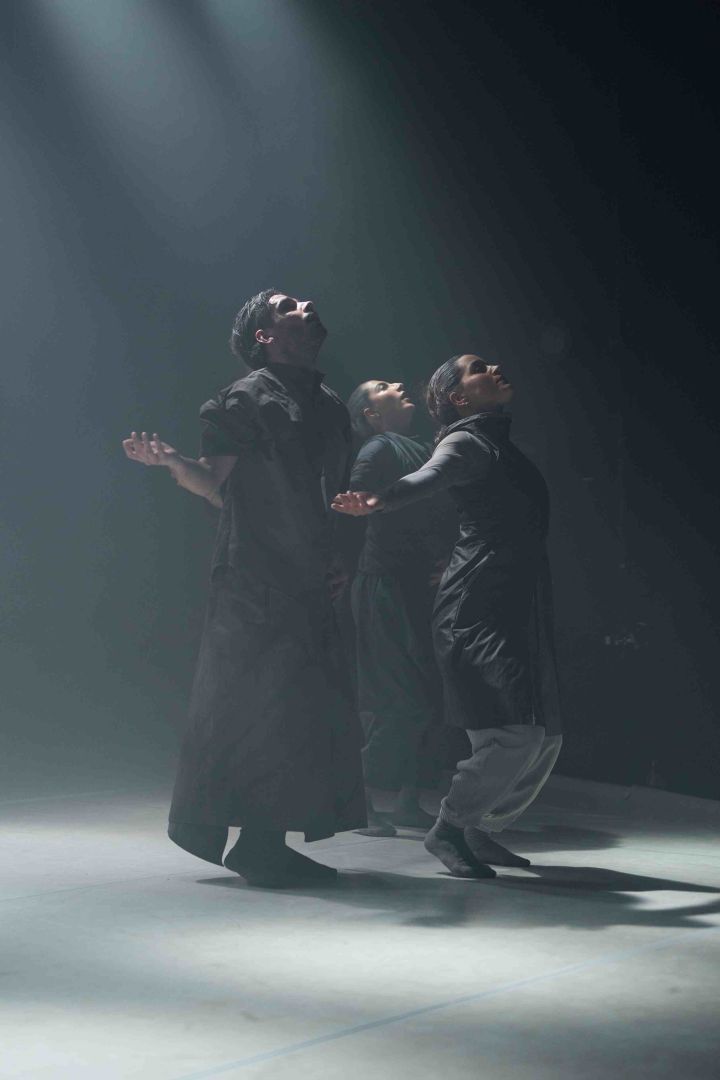 Se trata de una propuesta muy dinámica y física, con una energía que se mantiene en flujo continuo. El movimiento no se detiene: evoluciona, se transforma y despliega nuevas calidades corporales, creando un tejido escénico en permanente cambio. Esta intensidad física, combinada con su naturaleza ritual, invita al público a sumergirse en una experiencia sensorial en la que el tiempo parece suspender su lógica habitual.