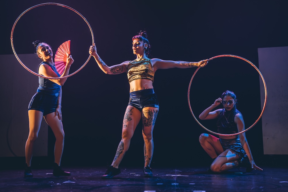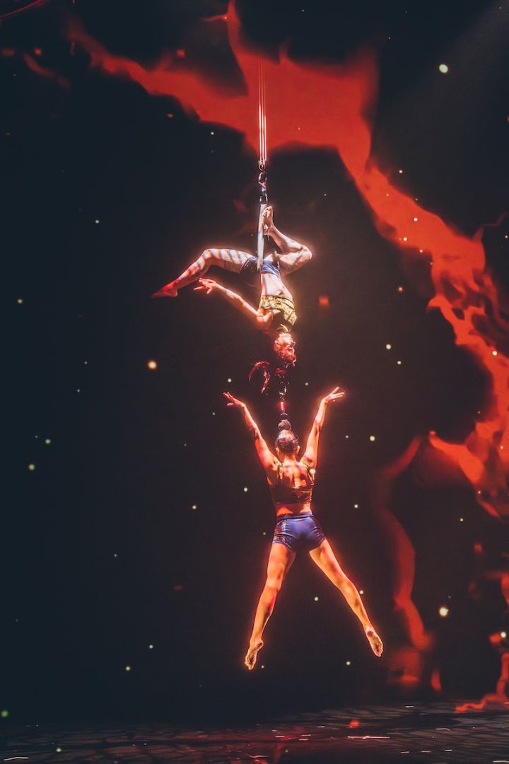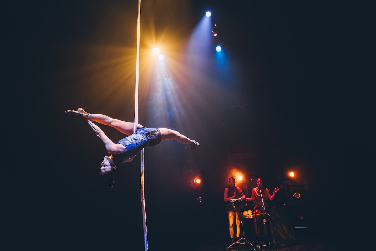 Disciplinas: Musica en directo, danza, suspensión capilar, hula hops, lanzamiento de cuchillos, percusión corporal, straps y cuerda.