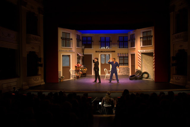 La acción tiene lugar en 1934, en una plaza de barrio madrileña en la que hay un garaje, un bar y una tienda de flores llamada «La del Manojo de Rosas». Se encuentran en la tienda, Joaquín, oficial mecánico del garaje con su aprendiz Capó, además de Don Daniel, el dueño de la tienda de flores y el camarero del bar, apodado Espasa por su afición a usar grandilocuentes expresiones, y romper los moldes del vocabulario. Ascensión, la florista, hija de Don Daniel, es una mocita madrileña de educación esmerada, pero orgullosa de su origen obrero, por lo que no quiere oír hablar de amores más que con un hombre de su clase. Aunque Don Daniel le ha aconsejado aceptar la proposición de Ricardo, joven y simpático aviador, Ascensión a quien quiere es a Joaquín, el mecánico, que le corresponde. Ricardo, tras una conversación con Don Daniel, está convencido de ser el candidato predilecto de Ascensión, y decide ir a declararse, pero al llegar a la puerta de la floristería se encuentra con Joaquín, los dos intercambian bravatas y amenazas. En contraste con este conflicto amoroso aparece otro entre Clarita, una coqueta manicura, Capó y Espasa. Aunque novia del primero, se deja querer por el otro, para así poner a prueba su amor. Espasa, que piensa que Clarita está loca por él, utiliza toda su verborrea para aburrir a Capó con sus camelos y hacerse dueño de la situación. Los padres de Joaquín, son Doña Mariana, mujer simpática y afable, y Don Pedro Botero, así apodado por ser un próspero traficante de chatarra. Ascensión lleva todos los días un ramo de rosas a Doña Mariana, sin saber que es la madre de Joaquín, por lo que, cuando aparece éste vestido como un señorito, comprende la florista que ha sido engañada en su buena fe. Más tarde, Ascensión está sentada en la puerta de su tienda y llega Joaquín, que como si no la hubiera visto en su casa, trata de piropearla. Pero ella le reprocha su conducta y le desprecia. Al enterarse de la ruptura, Ricardo, que no pierde la oportunidad, vuelve a cortejar a Ascensión quien, en su despecho, le acepta como novio delante de Joaquín. Meses después, Espasa, ahora cobrador de autobús, sigue mareando a Capó con su palabrería, que decide pagarle de la misma forma, y con la ayuda de un diccionario gitano, deja a Espasa descentrado y sorprendido. Envalentonado, Capó corteja a Clarita en puro argot faraónico. Por su parte, la relación entre Ascensión y Ricardo,