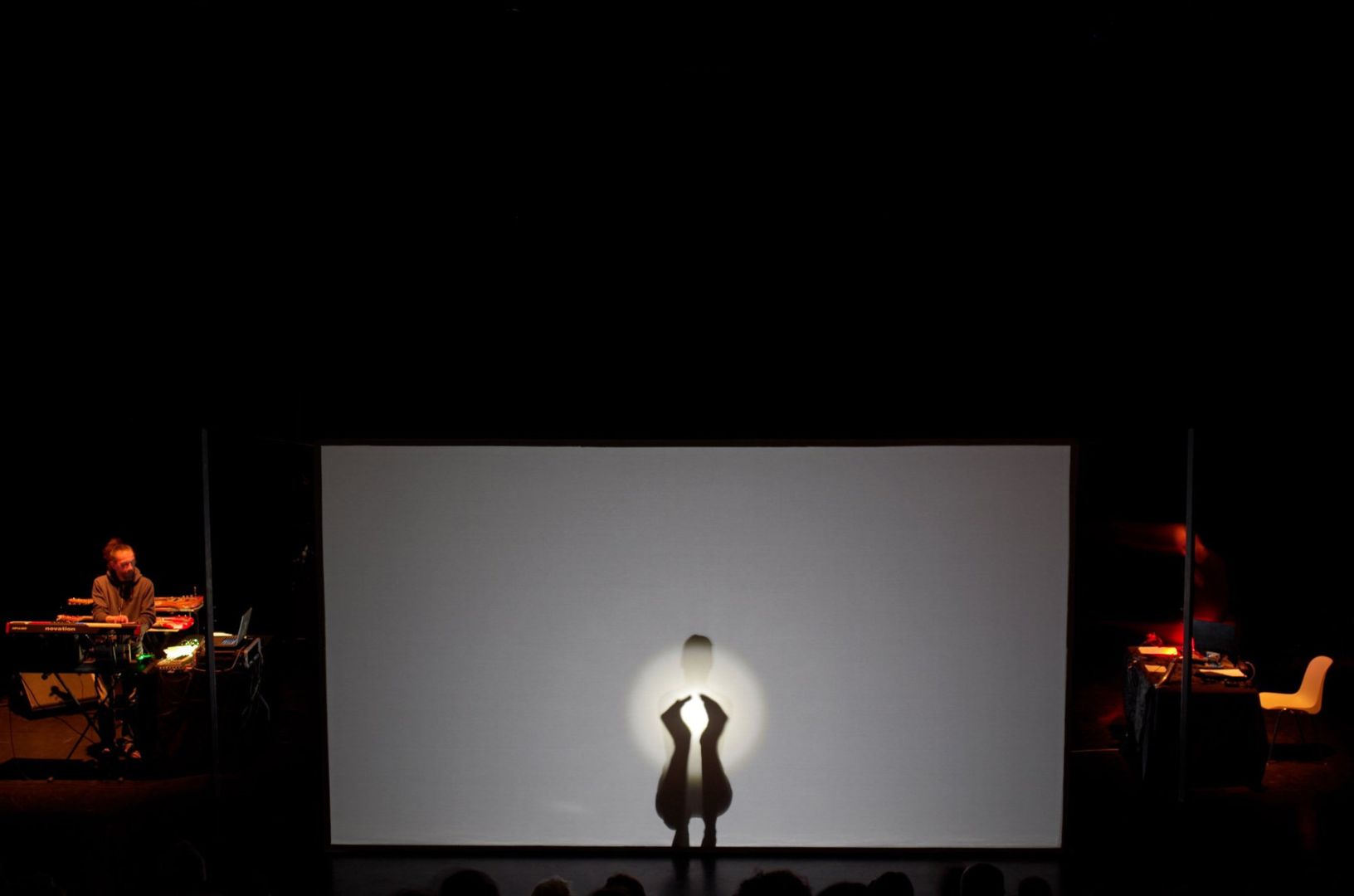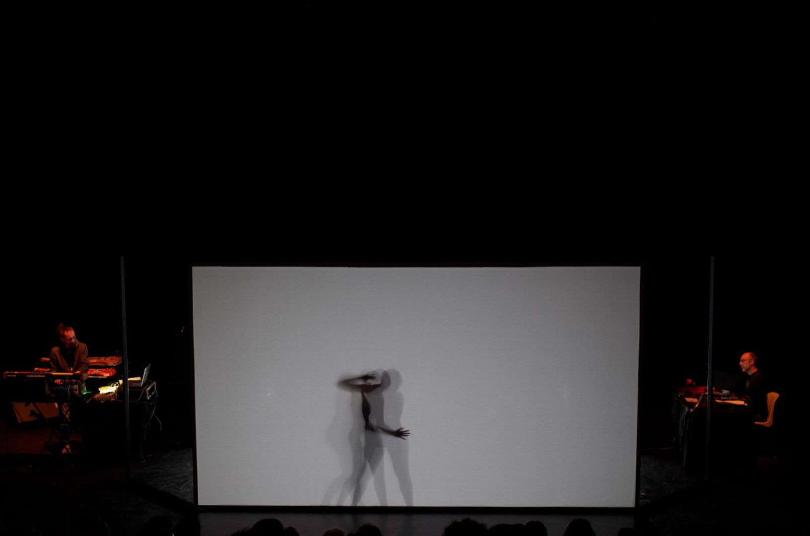 Inmerso en la oscuridad y frente a un lienzo estirado guiado por la evolución de las sombras corporales del intérprete, el público pierde la medida de sus percepciones.