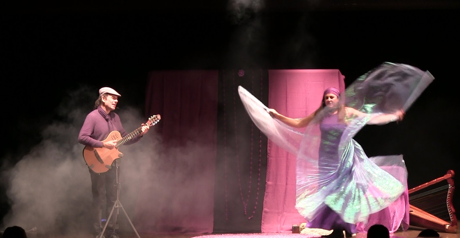 Una mujer atrapada en una red se va liberando al ritmo de la música. Transmite un poderoso magnetismo. La acompaña un hombre con una guitarra, y juntos ocupan el centro del escenario. Mientras él desgrana melodías, ella va llenando nuestro corazón con historias que tienen una única protagonista: la mujer.