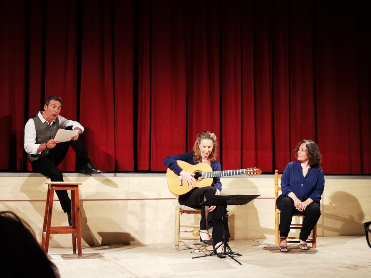 MAB Consort ofrece una versión a tres con el actor Pep Planas, con la interpretación de la transcripción para guitarra y canto de Carmen Becerra y la mezzosoprano Maria Altadill. Se trata de la voluntad de buscar un formato centrado en el espíritu de “la Barraca”, en ese espíritu de movilidad para poder llevar a cualquier rincón la cultura. La apuesta clara en escoger la guitarra como instrumento y una escenografia austera, centrando en la palabra el espectáculo, es una muestra sin titubeos de esta voluntad. Éste espectáculo se articula como un recorrido dramático en distintos “palos” o escenas que evocan las pasiones esenciales del universo lorquiano: el amor, la herida, la sangre y la traición. La música y la palabra se entrelazan para devolver al escenario la intensidad poética de Lorca y el eco del folklore que tanto amó.
