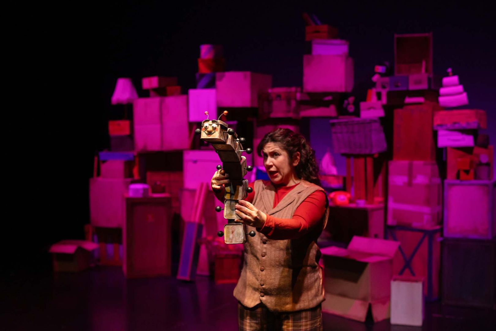 Dos actrices exploran cada una de las posibilidades que nos ofrecen las cajas: Una mudanza, el día a día de unas cajeras entre cajas, la historia de una niña que vive en una de ellas… A través de la ternura y el humor, las dos actrices emplean distintos lenguajes escénicos, poniendo en valor, entre otros, conceptos como la amistad, la empatía y el cuidado a nuestros mayores. Un espectáculo donde, en el interior de cada caja, se esconde un universo que espera ser descubierto.